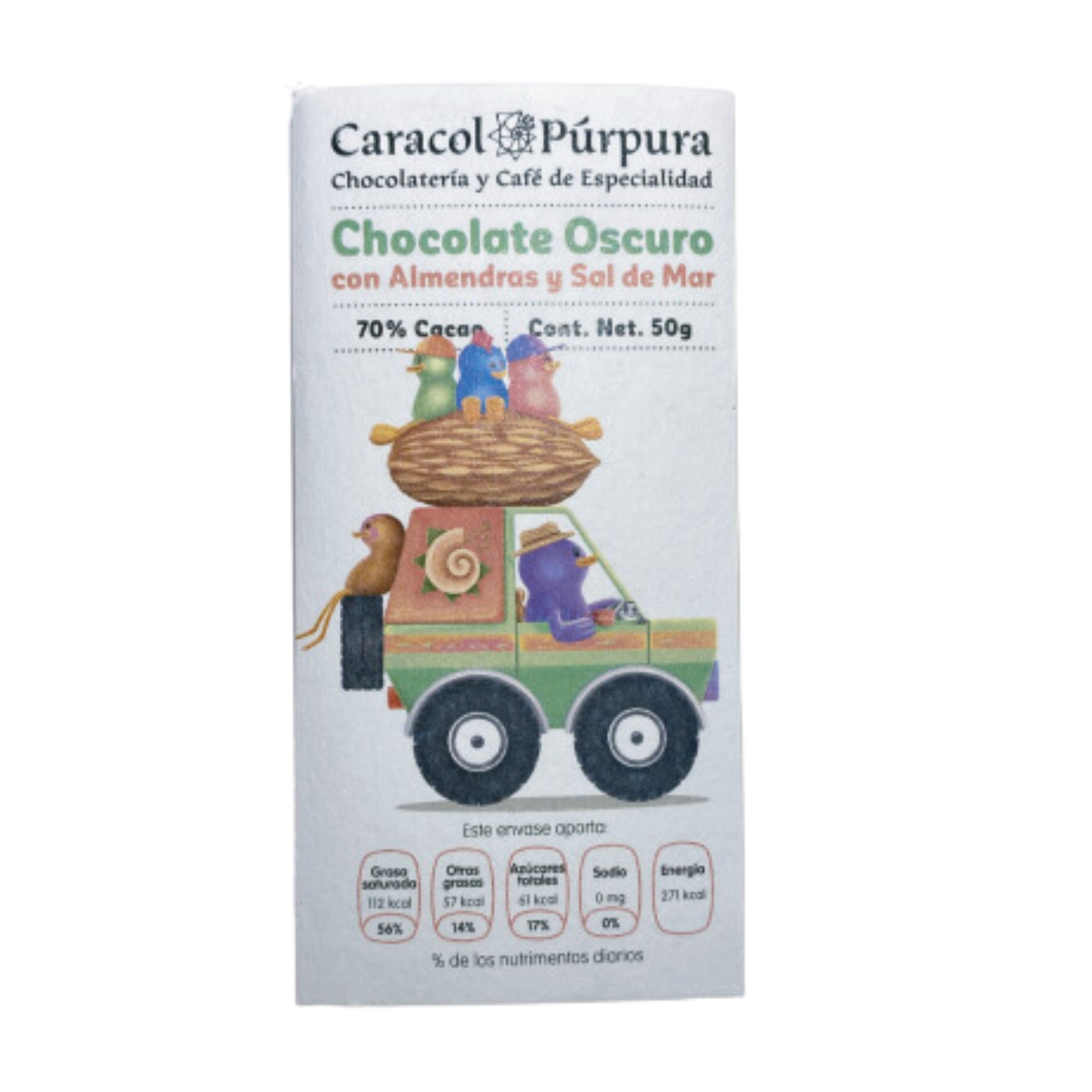 OSCURO CON ALMENDRAS Y SAL DE MAR 70 % CACAO 50 gr